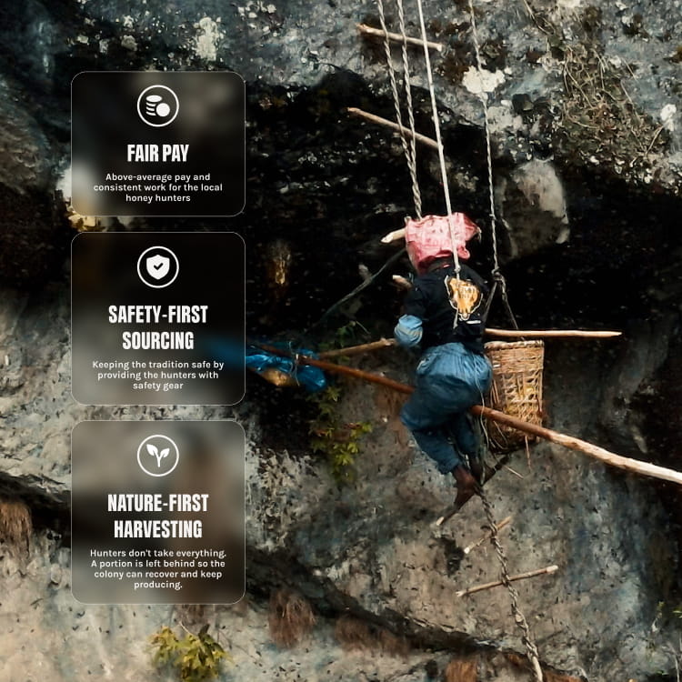 A rare wild honey harvested high by hand in the Himalayas and Black Sea mountains, used for centuries for its rich flavor, and unique natural effects. Limited supply, unmatched flavor.