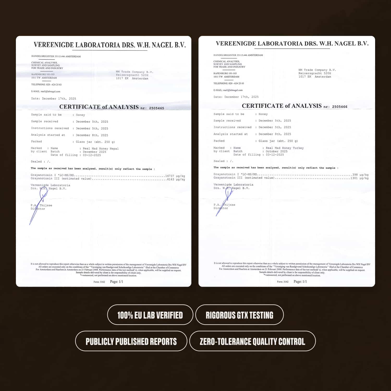 We strive for quality and our 3rd-party verification is a testament to this. This means you’re receiving top-quality Mad Honey you can trust. And it can be in your hands within a week of purchase.
