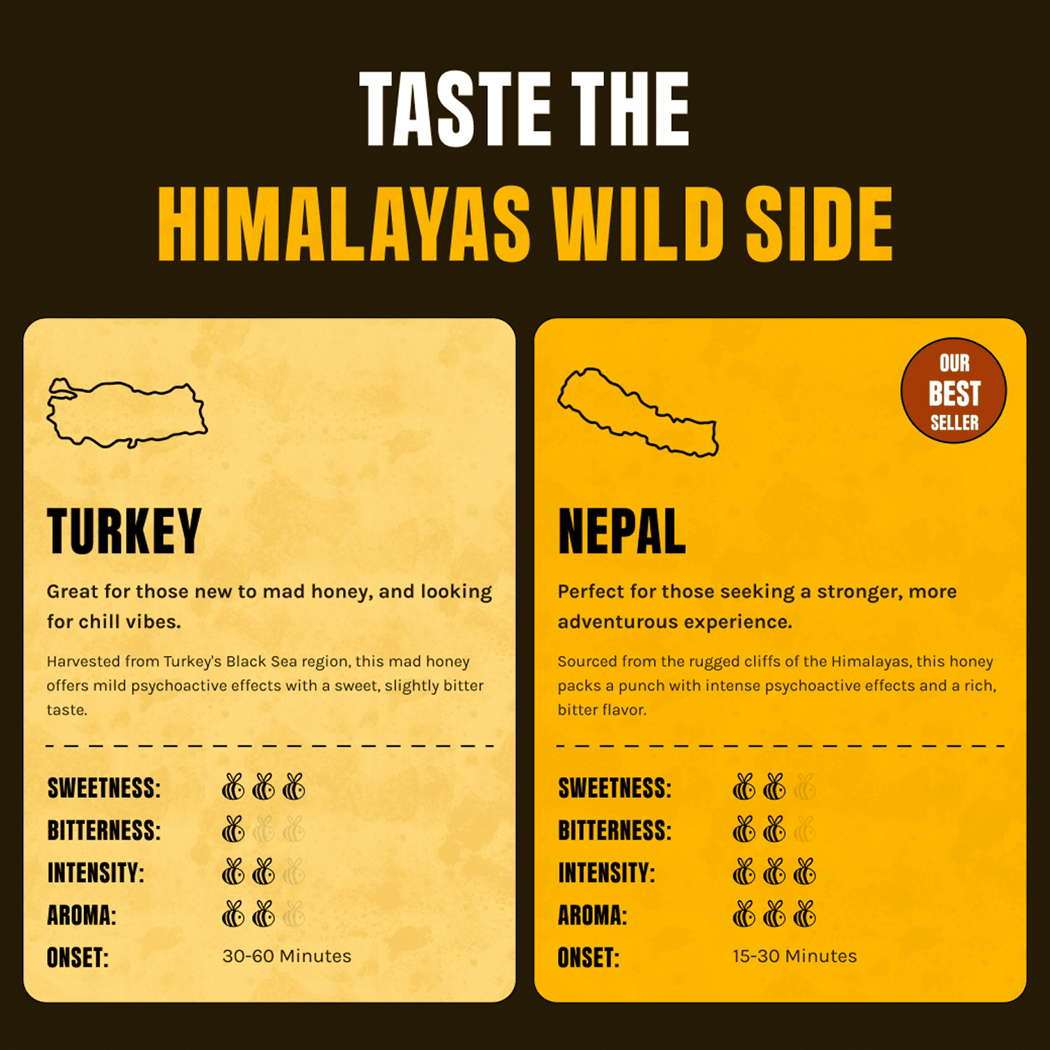 Od wieków Mad Honey w chwilach bliskości i więzi. Niesie ze sobą tajemnicę gór i ciepło wspólnoty. Łyżeczka tego miodu to coś więcej niż tylko smak – to historia, którą warto się podzielić. Przekazywany z pokolenia na pokolenie, jest rytuałem intymności i legendą.